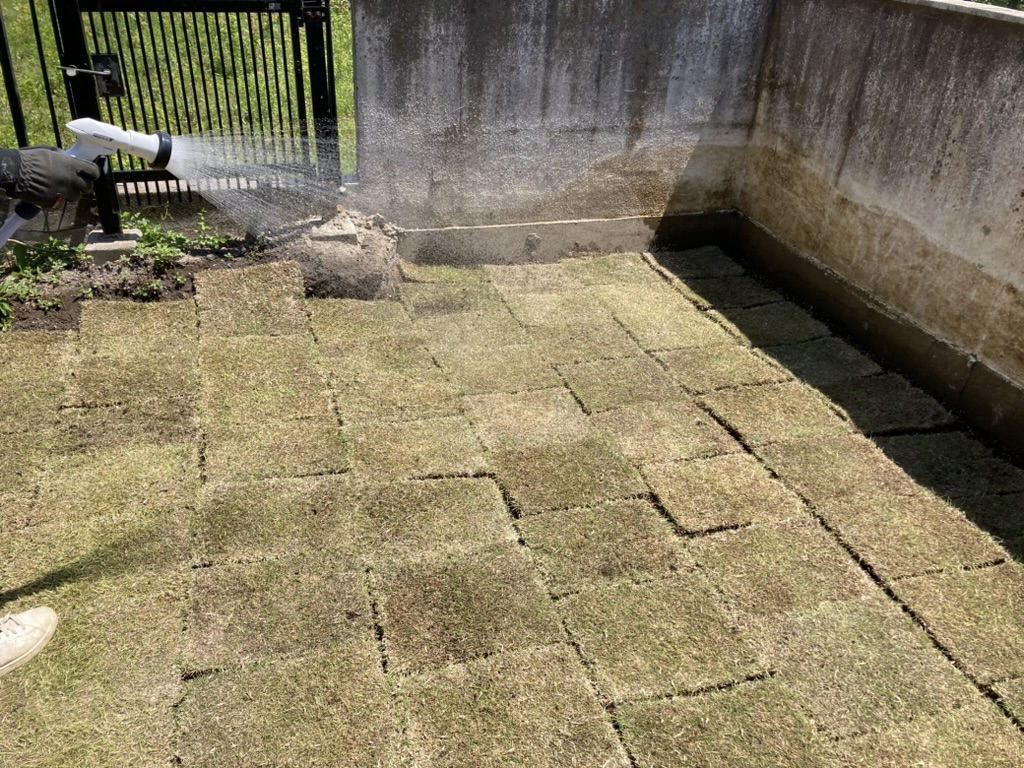 芝張りは梅雨前にやると良いと言われている理由の一つ、水やりです!