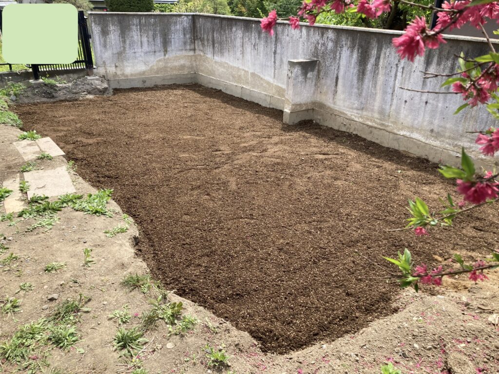 それでも余ったので、土をさらに掘って、芝の面積を少し増やしました!
