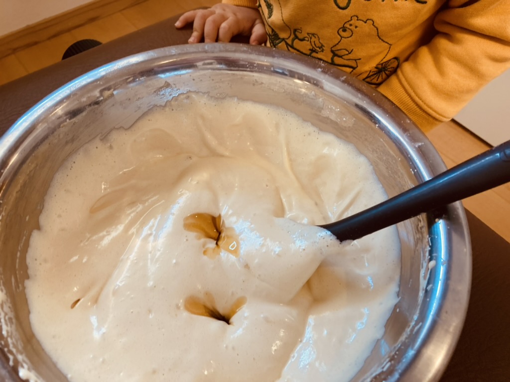 電動泡立て器の音がすると、「はちみつケーキだ!」と台所に走っていきました。