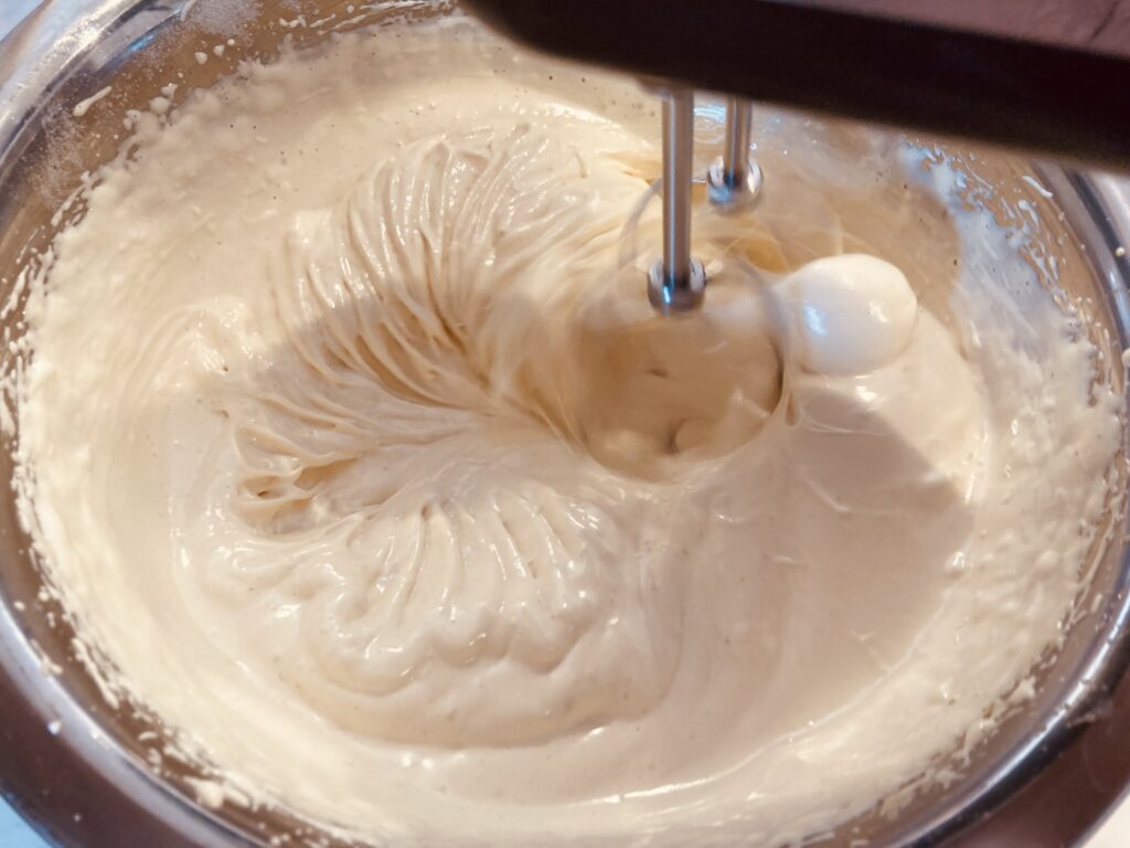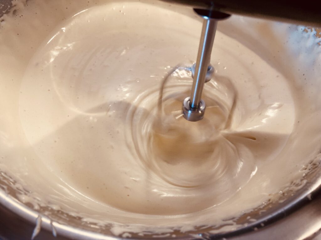 生地がもったりするまで混ぜます。だいたい最大高速で10分です。
