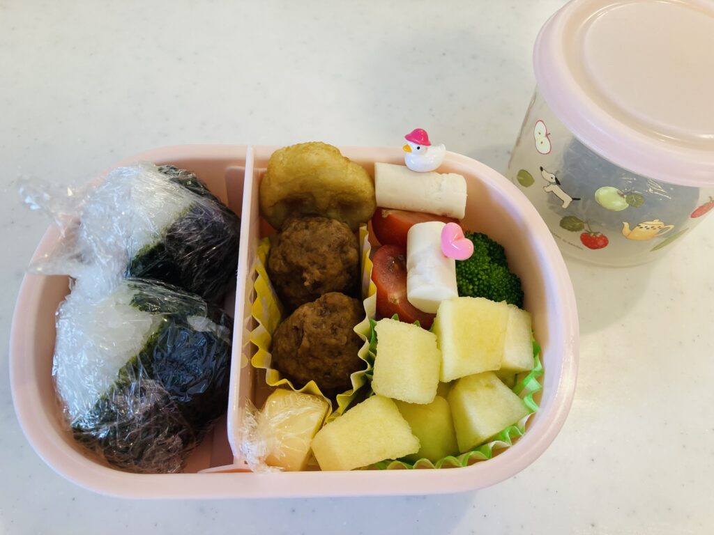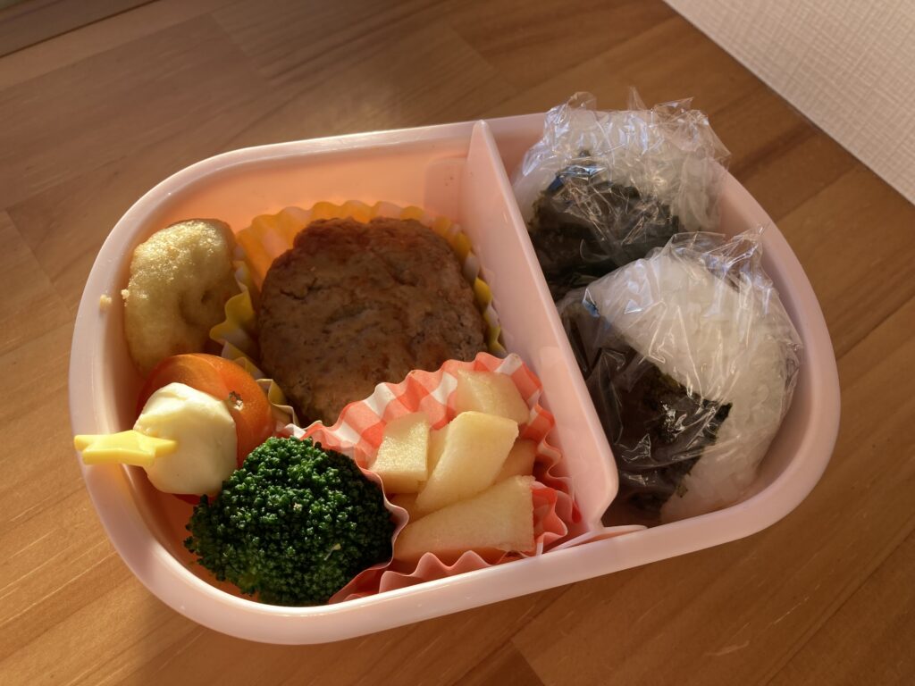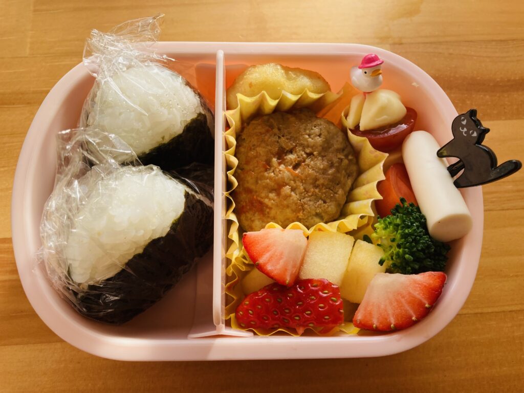 そのうちお弁当箱いっぱいのおかずが食べられるようになれば、おにぎりは外に出そうかな、と思っています。
