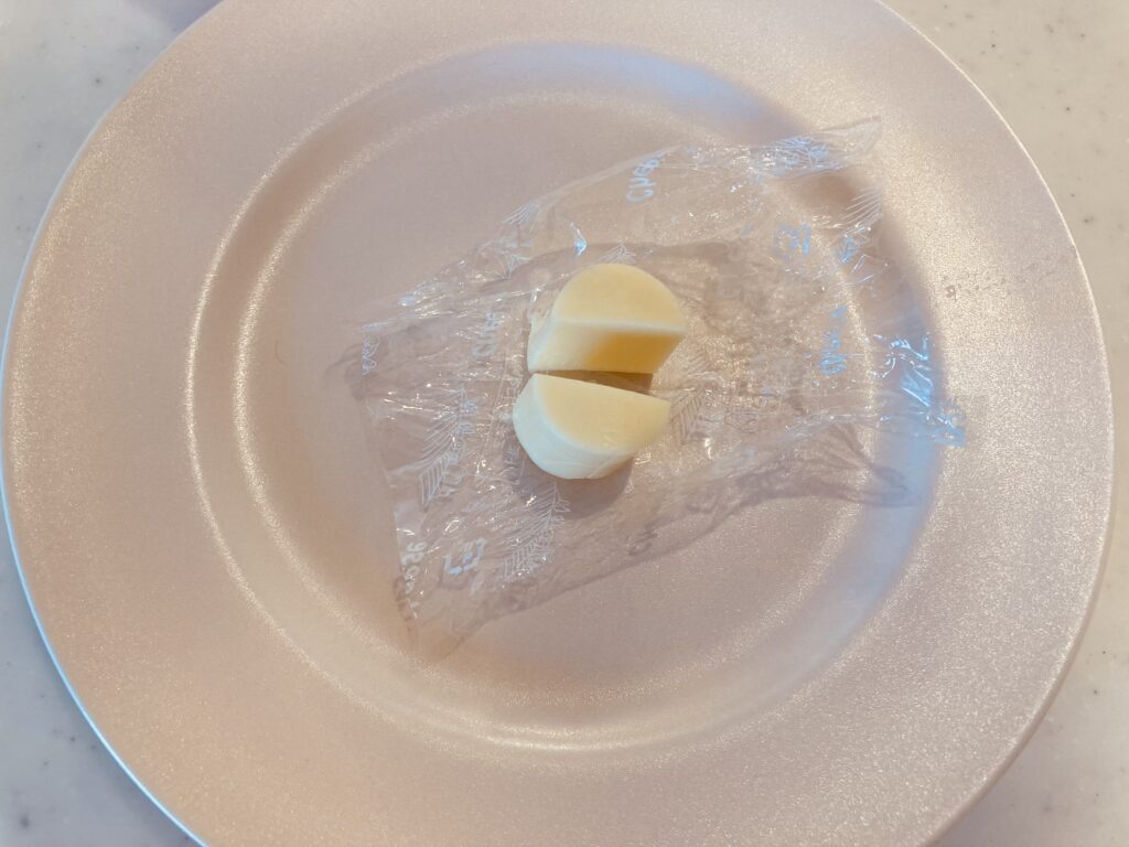 喉に詰まらせないように、半分に切ってから包み直して入れてました。